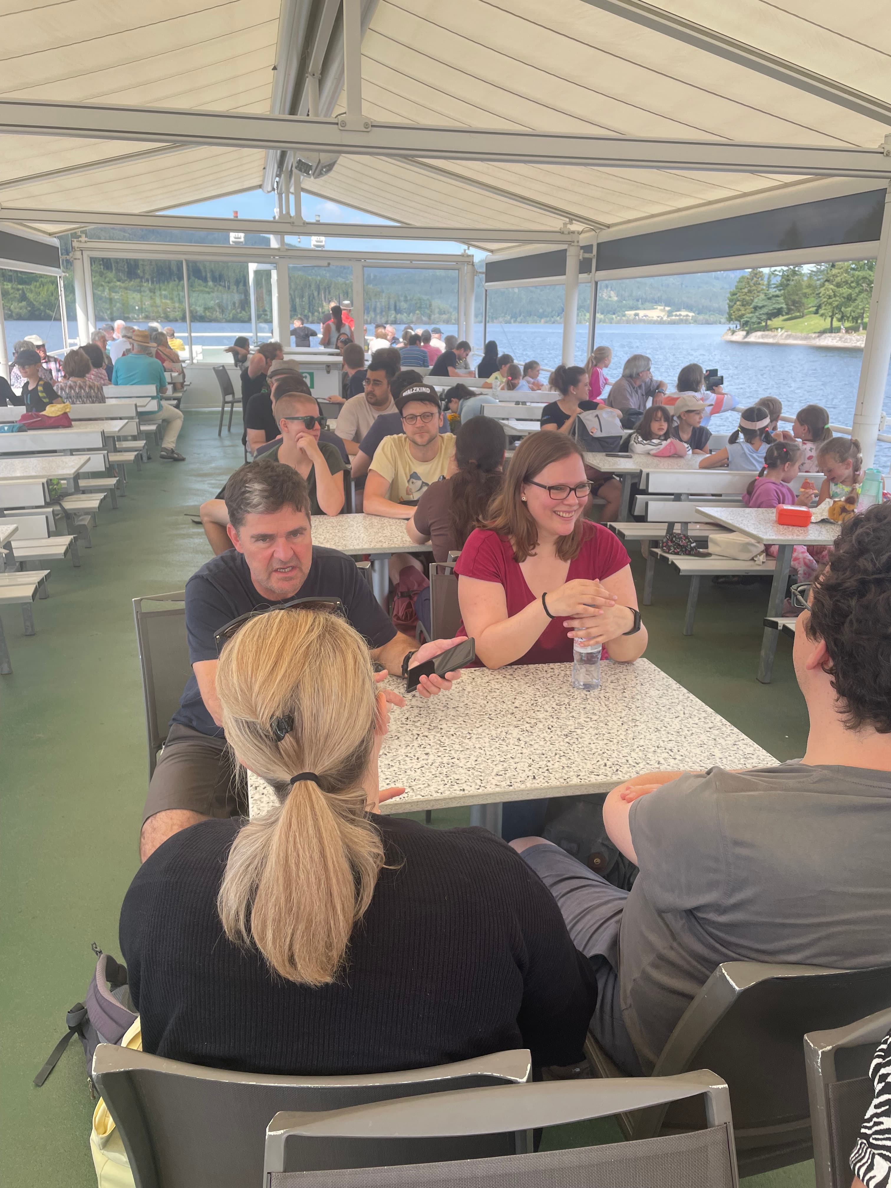 Unser Abenteuer begann mit der Bahnfahrt zum Schluchsee. Ursprünglich hatten wir eine Fahrt mit der historischen Sauschwänzlebahn geplant, doch aufgrund eines Lokdefekts mussten wir umdisponieren. Stattdessen erwartete uns eine idyllische Bootsfahrt auf dem Schluchsee. Bei strahlendem Sonnenschein glitten wir über das Wasser und bewunderten die Landschaft, die uns umgab. Die kühle, frische Luft und die malerische Kulisse sorgten sofort für gute Laune und Entspannung.